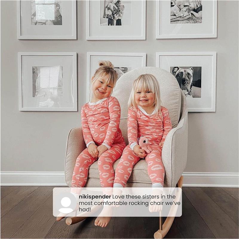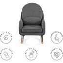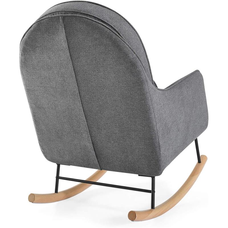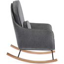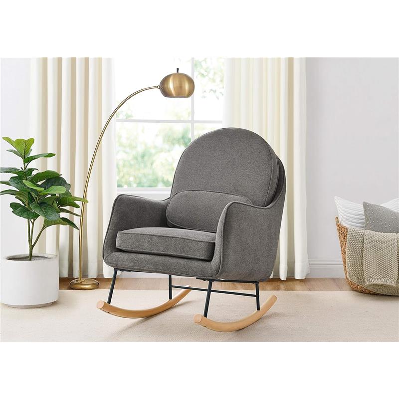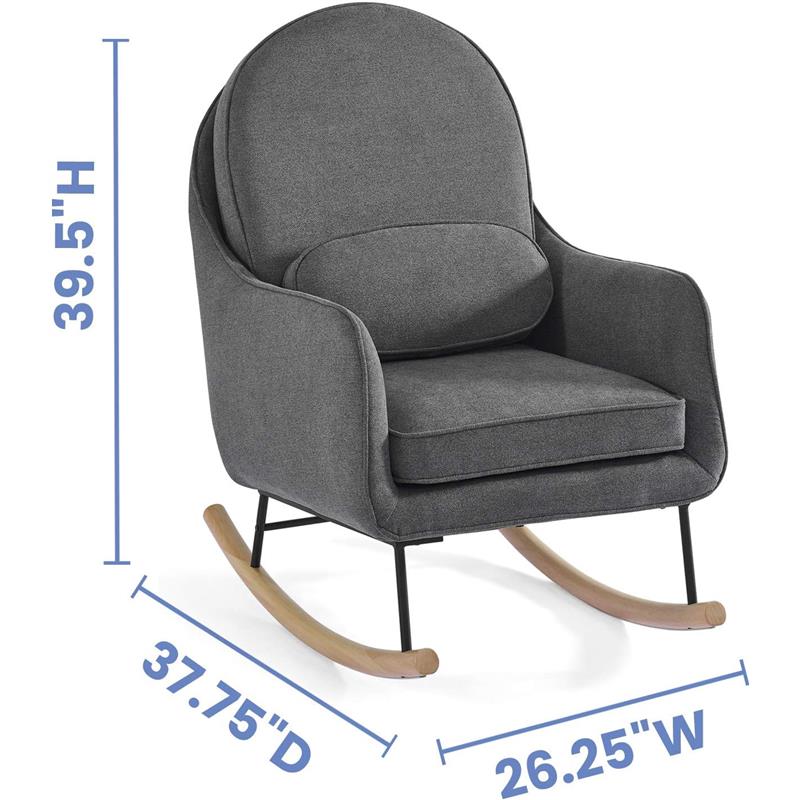 Thoughtfully designed, the rocker boasts a lumbar back cushion for added support, enhancing your comfort to unparalleled heights. Its modern metal and wood rocking base exudes a timeless style, adding a contemporary touch to any space in your home.