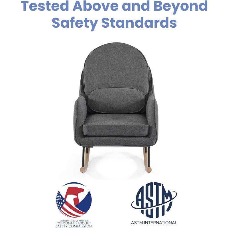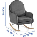 This sturdy build, with a robust wood frame providing stability, is not just a piece of furniture; it's a promise of safety and durability. It stands tall with the assembled dimensions of 25.75"W x 37.75"D x 39.5"H; while the seat, with dimensions of 20.75"W x 20.25"D, sits 18.25"H from the floor. The seat cushion is a comfortable 4.5" thick, and the seat back stretches up to 25"H. Experience the magic of comfortable living with our rocker, where every detail is crafted with you in mind.