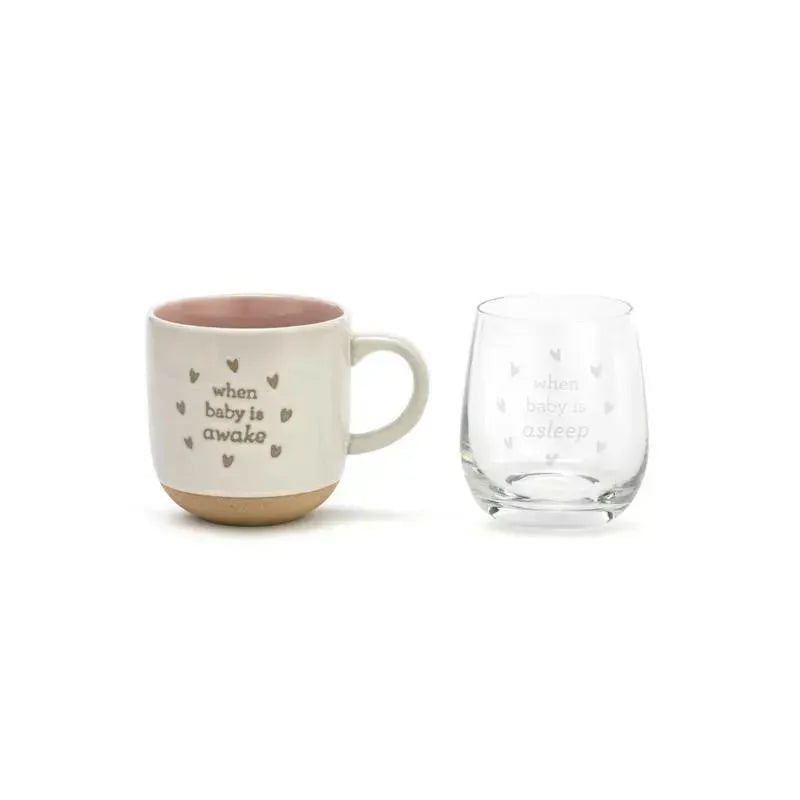 Show mom how much she is cherished while she cares for a new baby with this gorgeous mug and wine glass set designed as a loving reminder to always take time for herself
