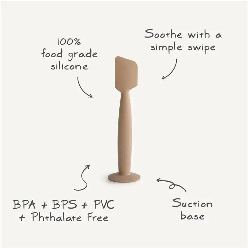 The mushie soft and flexible silicone diaper cream applicator gives caregivers the confidence to soothe baby with a simple swipe. Messy jobs become manageable as the spatula applicator is easy to use and easy to clean.