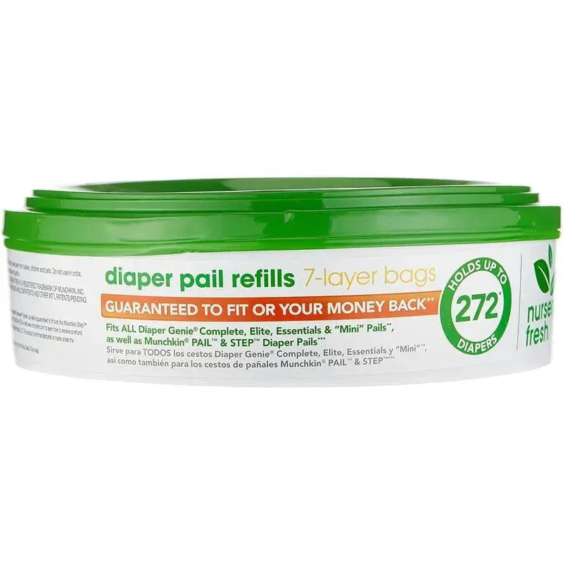 Each Refill cartridge holds up to 272 newborn diapers. Made with 7-layer film.