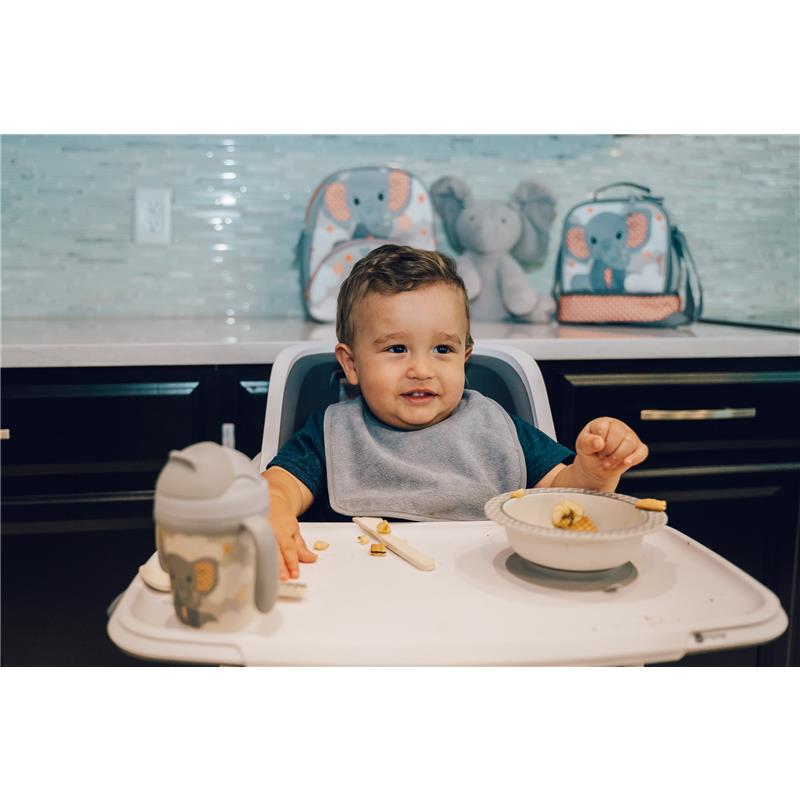 Primo Passi | Bamboo Fiber Kids Super Combo - Divided Square Plate, Square Bowl, Fork&Spoon, And 3 Food Container With Lids - Little Elephant