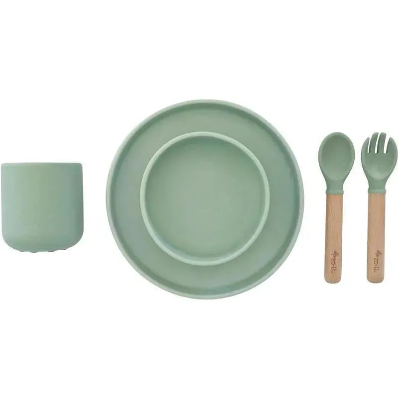 Zoli - 5Pk Silicone Kids Dishware Set, Sage Green