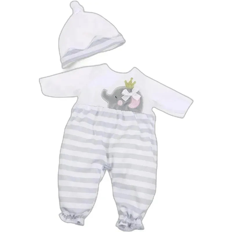 JC Toys - Berenguer Boutique Baby Doll Outfit, Gray Striped Long Onesie, Ages 2+
