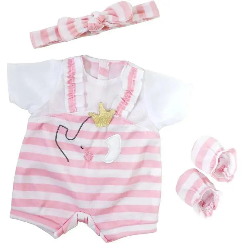 JC Toys - Berenguer Boutique Baby Doll Outfit, Pink Stripes and White Overall Shorts, Ages 2+