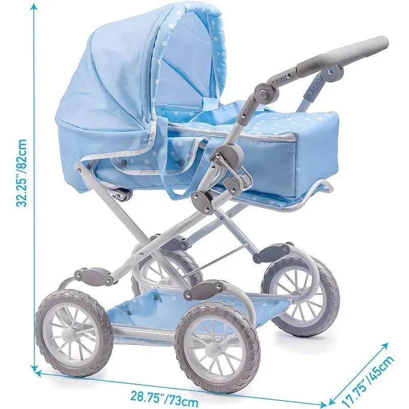 JC Toys - Berenguer Boutique, Deluxe Foldable Baby Doll Stroller with Canopy, Blue