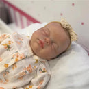 This beautiful white baby doll reborn has painted hair and closed eyes.