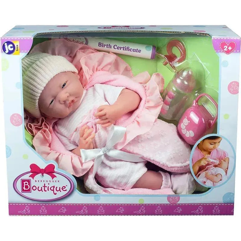 The La Newborn collection of baby dolls were hand-designed in Spain by the Designed by Berenguer team, an award-winning group of the world’s best doll designers. Every La Newborn was originally hand-sculpted by a doll design specialist, so the quality level is beyond anything you’ve ever seen. Dolls from the La Newborn collection represent precious moments in a newborn’s life, like the first tired yawn or teardrop. This La Newborn baby doll, the Nursery, flawlessly imitates that once-in-a-lifetime leaving the hospital experience thanks to her intricately detailed dimples, folds, life-like wrinkles, and 8-piece layette gift set.