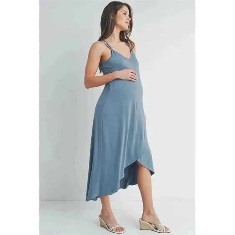 Hello Miz - High-Low Cross Back Maternity Midi Dress, Chambray