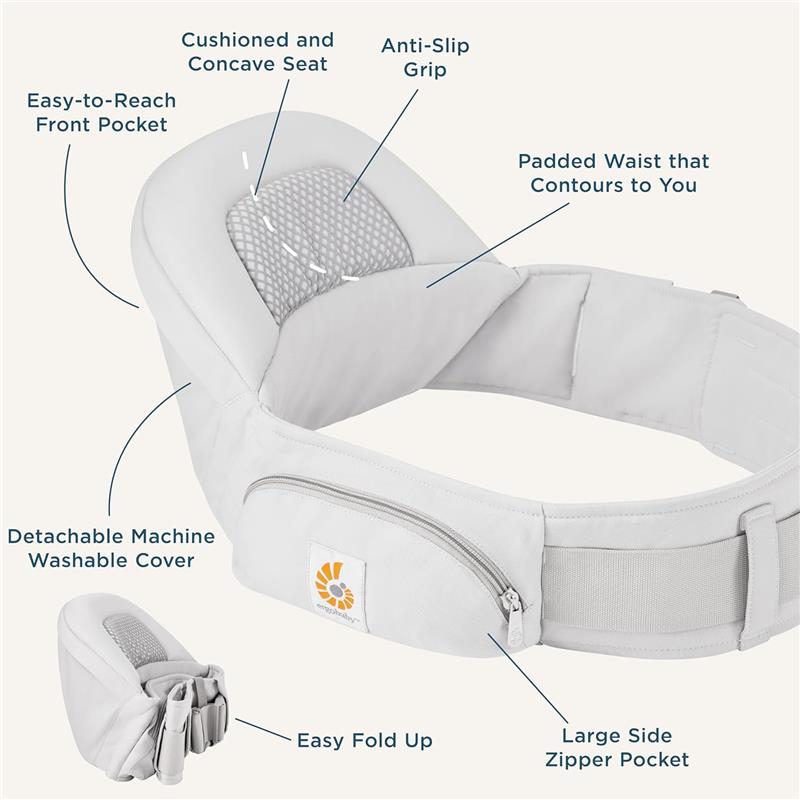 FLEXIBLE CARRY OPTIONS: This hip carrier for baby supports inward and outward front carry, hip carry and feeding positions. Adjusts to meet changing developmental needs and caregiver comfort throughout the day.