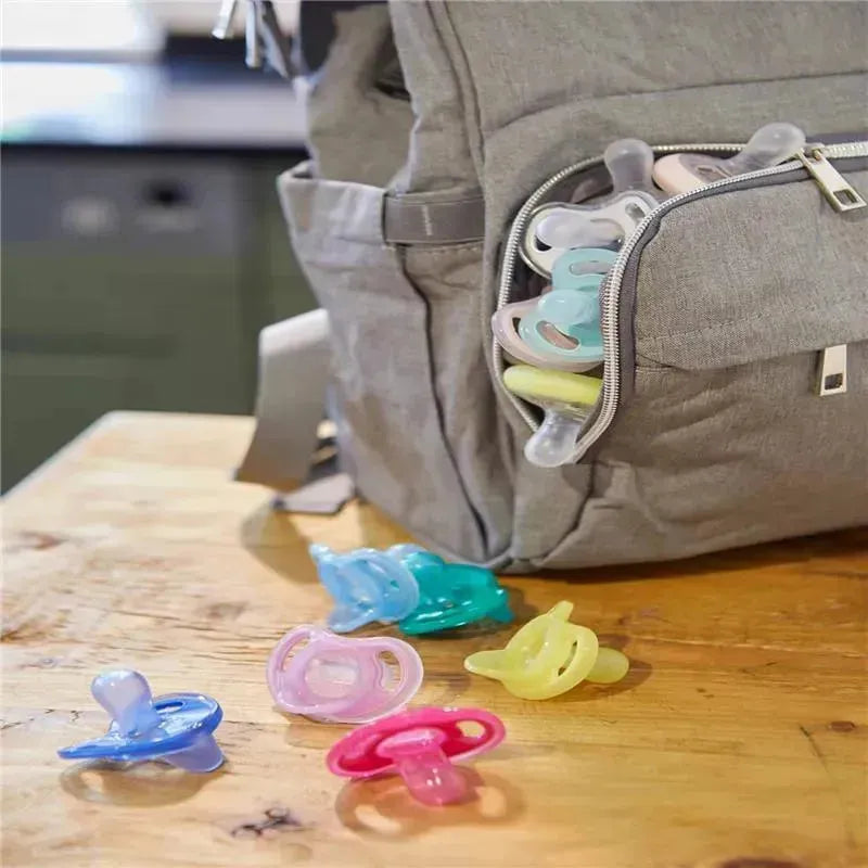 The lightweight soother that stays put in their mouth, so you don’t have to pick it up again and again (and again). • The lightest one-piece silicone soother* • Symmetrical silicone teat (so it always sits the right way up) • Air holes so their skin can breathe • 100% BPA free, medical grade silicone • Available in 3 age stages: 0-6, 6-18, and 18- 36 months • Orthodontic** *Assessed on readable retail sales accounting for 98% of UK soothers category and 95% of US pacifier category (0-6m size), Nov 2023. ** As compared to traditional round unvented soothers which do not compress as easily