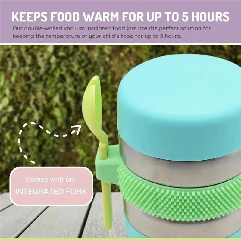 INTEGRATED FORK: Comes with a matching fork, integrated into the silicone sleeve so everything has a place, which comes in handy if your kids are anything like ours and misplace anything that isn’t attached to them!
