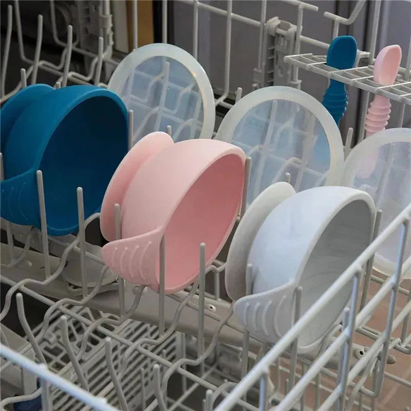 Silicone First Feeding set by Bumkins is a perfect solution for baby's transition to self-feeding. It features a suction base that keeps the bown in place, preventing it from sliding or flipping over. Designed with curved handles to help mom and dad with feeding, this bowl is made 100% with food grade silicone. It comes with a double end silicone spoon that grows with baby.