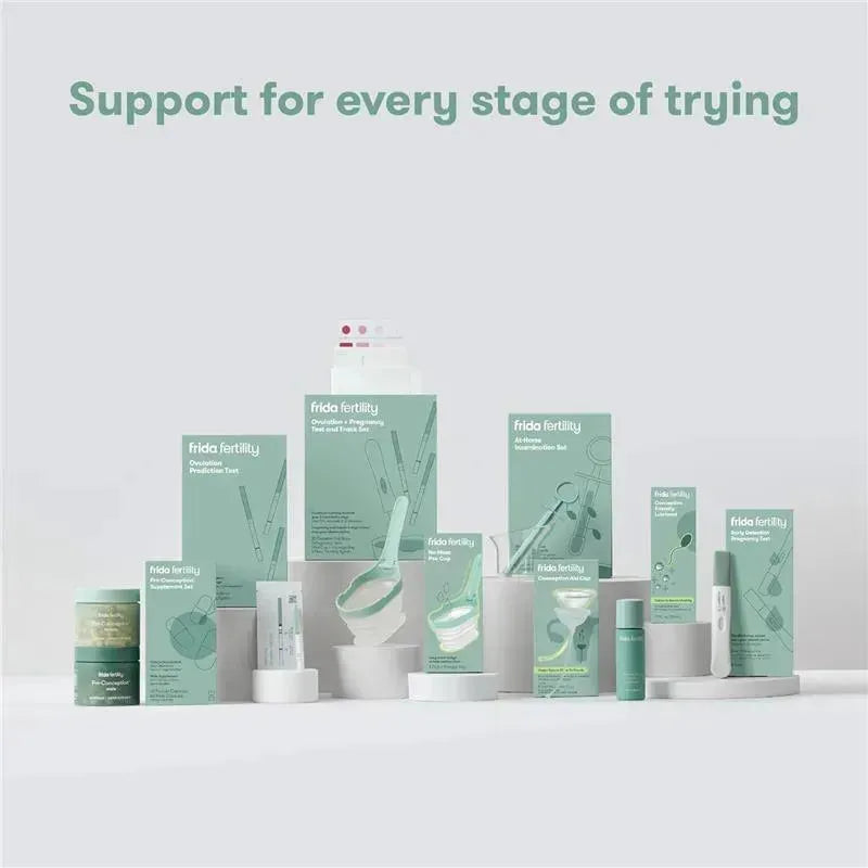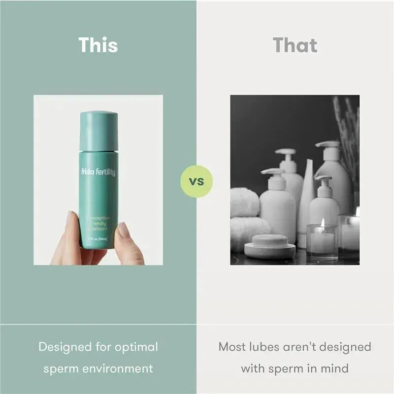 Trying doesn't have to be so trying. Frida Fertility Conception Friendly Lubricant is your partner in both bedroom fun and babymaking. Unlike traditional lubricants, such as oil-based lubes and saliva, that hinder sperm mobility, our sperm-safe formula ensures optimal conditions for conception. Say goodbye to discomfort and awkward application methods—Frida Fertility offers natural hydration that mimics the body's own mucus and comes in an easy-to-apply bottle instead of a syringe. Join the Frida Fertility community and embrace a smoother, more enjoyable path to parenthood.