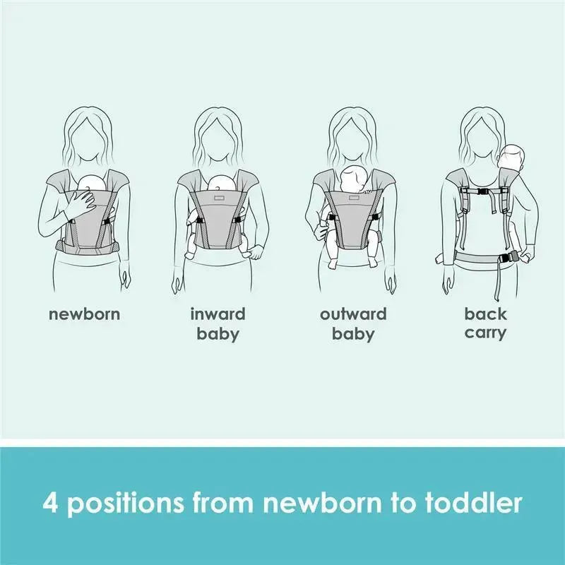4-Position Baby Carrier: Lightweight and portable carrier is comfortable to wear and simple to use; the perfect alternative to a complicated baby wrap