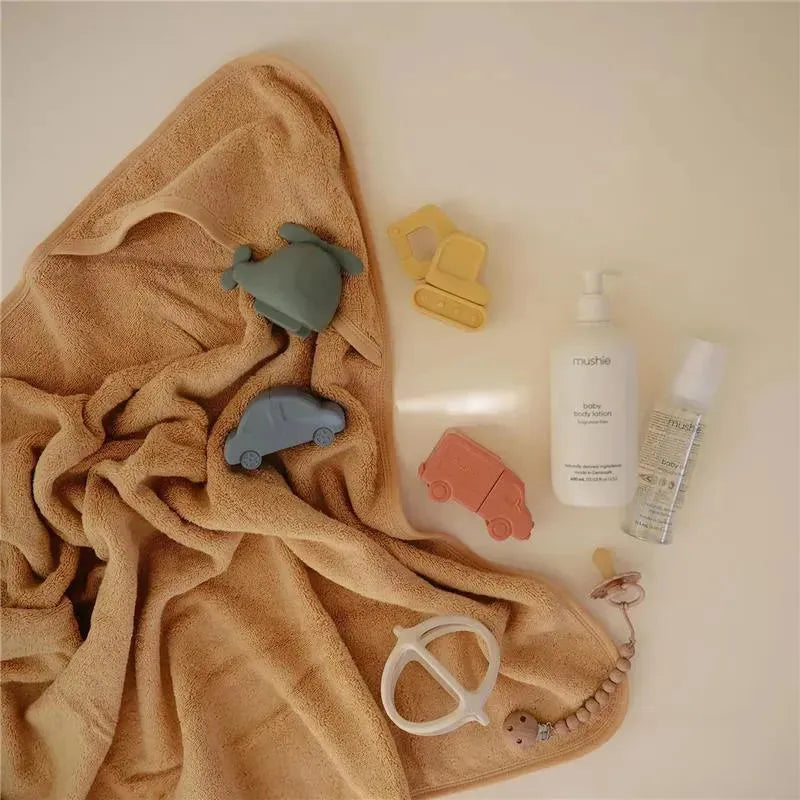 Make a Splash: Let your child's imagination travel far and wide with the muhsie bath play set that includes a helicopter, car, truck and excavator.