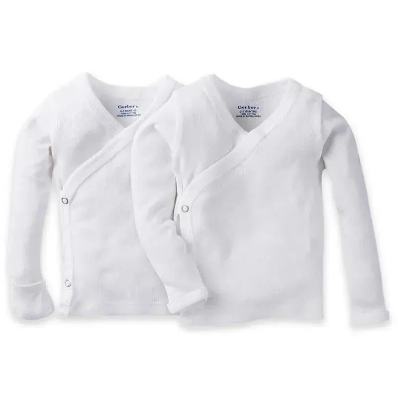 Gerber 2-pack White Side Snap Long Sleeve Shirt with Mitten Cuffs