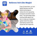 HOW IT WORKS – The grid shape technology mechanically adjusts the skin to help the lymphatic system drain the saliva injected by insects, relieving the itch response naturally and drug-free!