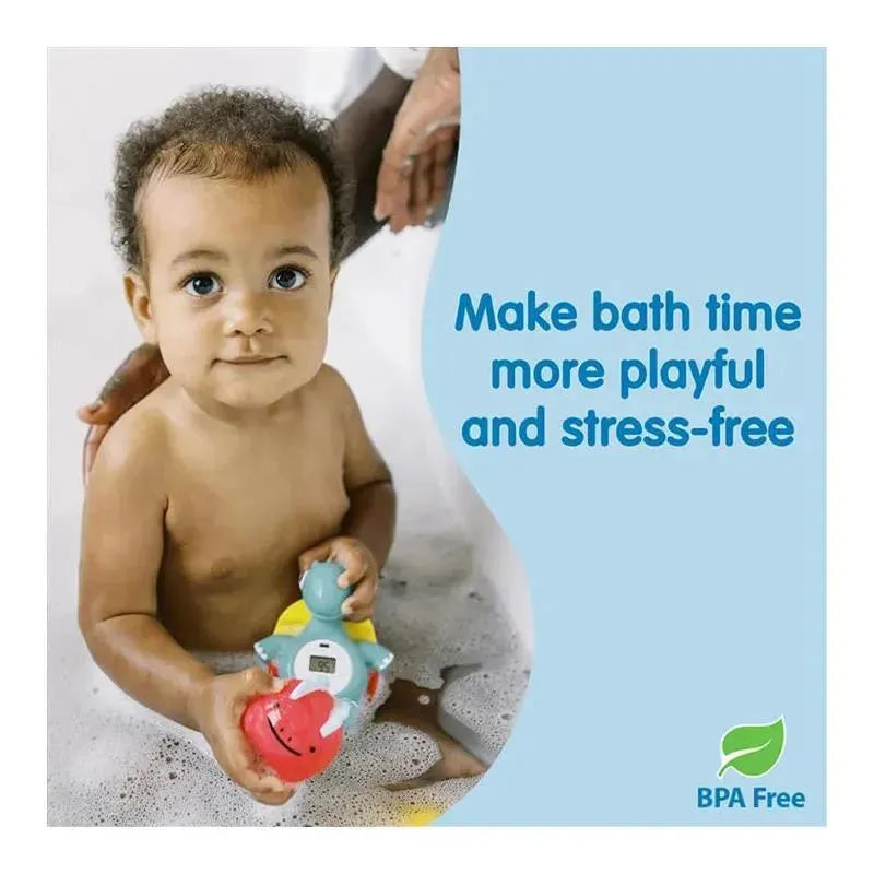 - Bath Thermometer Toy: The adorable floating dino accurately measures baby’s bath water temperature to protect baby and give you peace of mind during bath time.