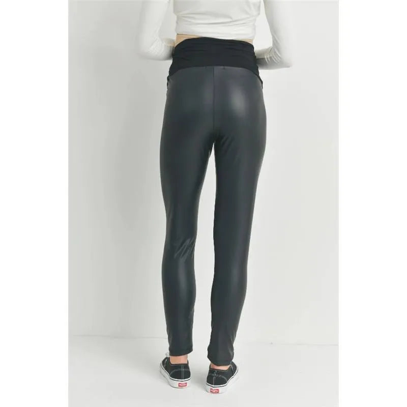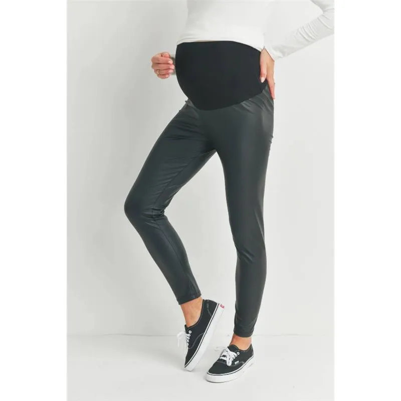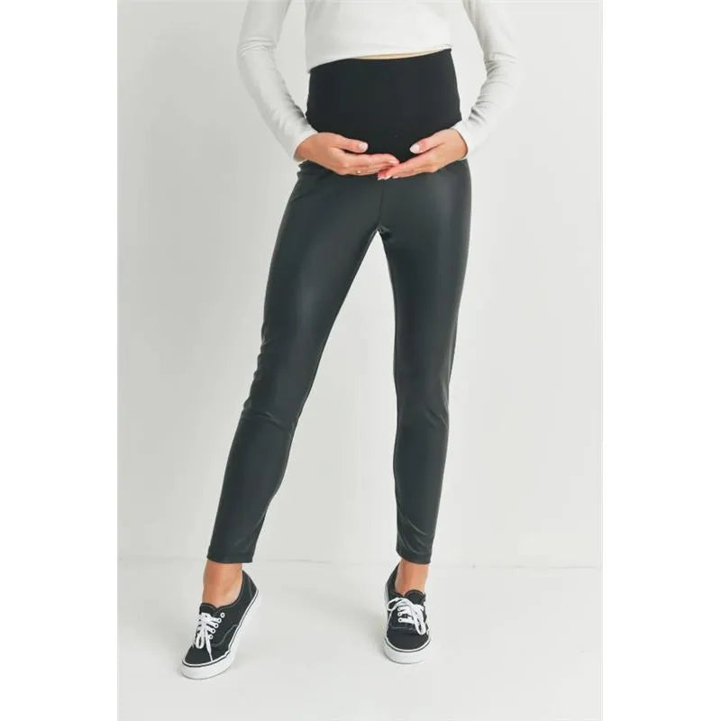 Hello Miz - Faux Leather Maternity Over The Bump Leggings, Black