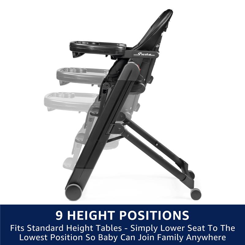 From birth, the Siesta serves as a cozy recliner, perfect for keeping your newborn close and secure. As they grow, transform the Siesta into a high chair with its five recline positions and nine height adjustments. These versatile features ensure a perfect fit for mealtime, playtime, or anytime in between.