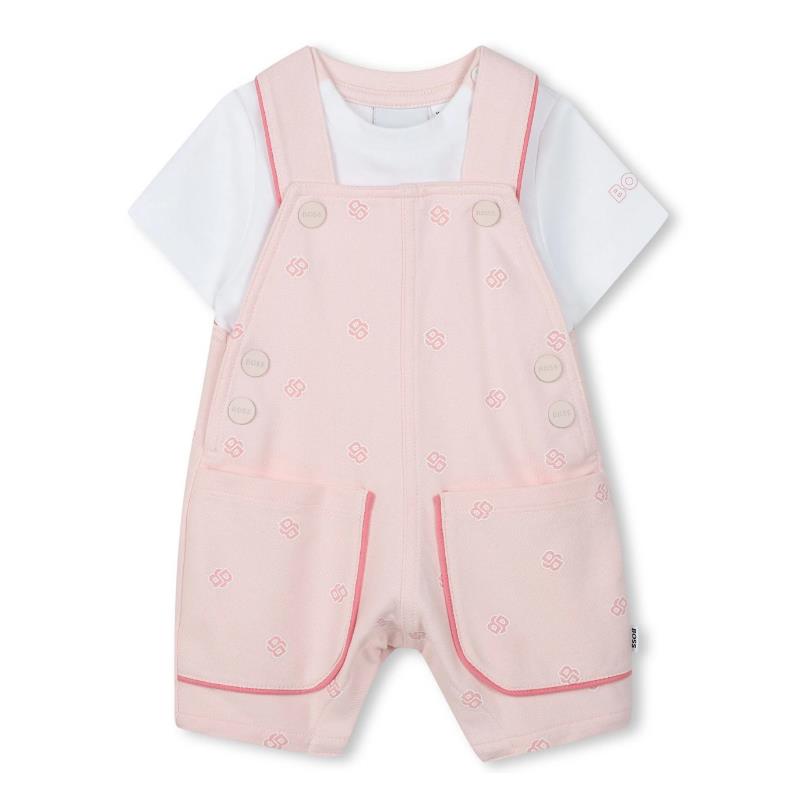 Hugo Boss Baby - Girl Dungarees & T-Shirt White And Pink