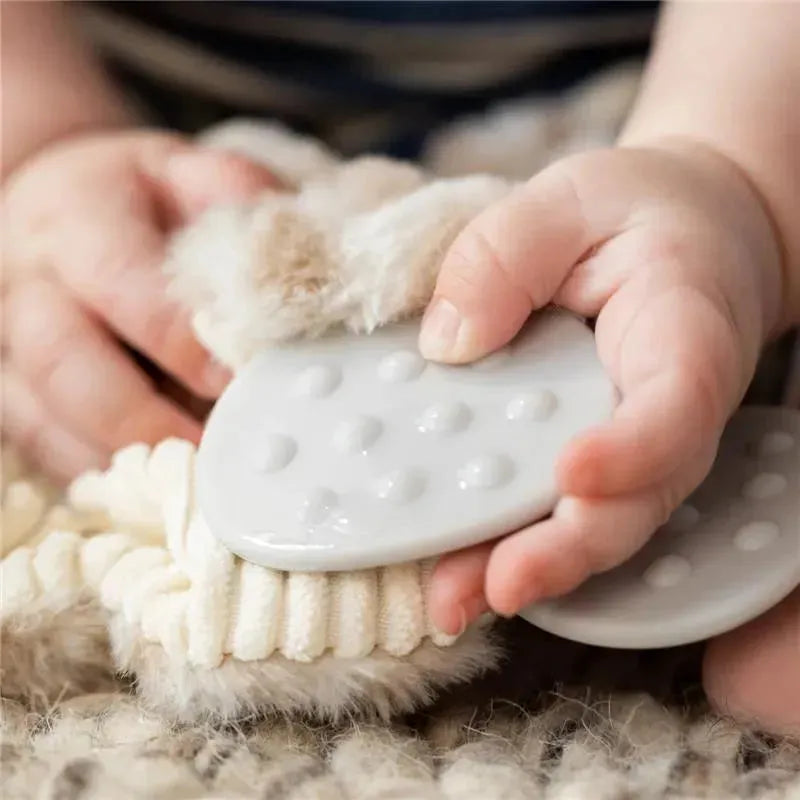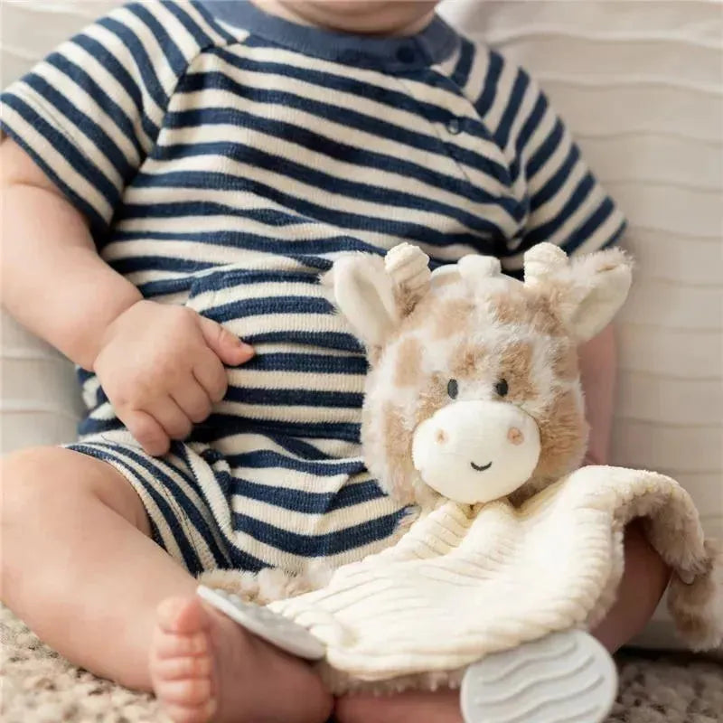 The adorable Giraffe Teether Buddy is the perfect buddy for an on-the-go parent or little one. This giraffe-shaped teething toy can be attached to any stroller and features BPA-free silicone feet and crinkly mylar paper at the ears. This piece is part of the curated Teether Buddies nursery collection. This line will make teething much easier on babies, moms and dads, with an on-the-go design that can attach to any stroller or carrier with ease. Each piece in this collection is designed with a machine washable plush material and BPA-free silicone feet with mylar paper in the ears for a fun crinkling effect as baby chews. This teether buddy will make the perfect present for any little one or parents-to-be.