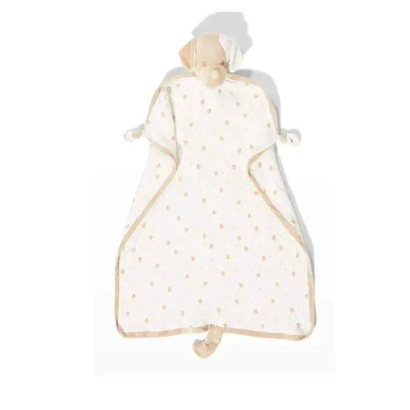 Wrap your baby in warm puppy dog hugs with the Auggie Tan Puppy Blanki! Made with machine washable, 100% cotton muslin and edged in velvety plush, Auggie’s ready for cuddling.