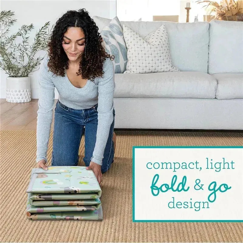 FOLDS COMPACTLY FOR EASY MOVING, TAKING ON-THE-GO, AND STORING: With its compact fold-and-go design, you can easily move or store away the mat whenever you need to. Perfect for traveling parents who want a play surface wherever they go