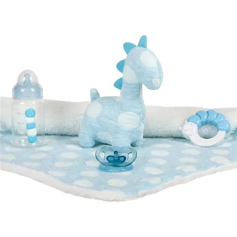 This sweet little boy is all dressed up in an adorable blue polka dot outfit, reversible plush blanket and matching booties and themed headband. The amazingly soft blanket is large enough so your child can swaddle her to keep him cozy and safe.