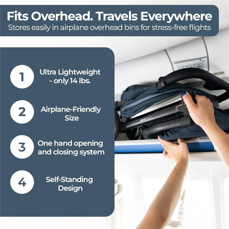 Weighing only 14 lbs, the Quid³ is one of the lightest strollers in its class. Its one-hand folding system makes packing up quick and effortless, while the self-standing feature keeps fabrics off the ground to stay clean. Once folded, the Quid³ becomes ultra-compact, measuring just 18.3’’ W x 23.2’’ H x 7.5’’ D, small enough to fit into most airplane overhead bins, narrow car trunks, and tight storage spaces.