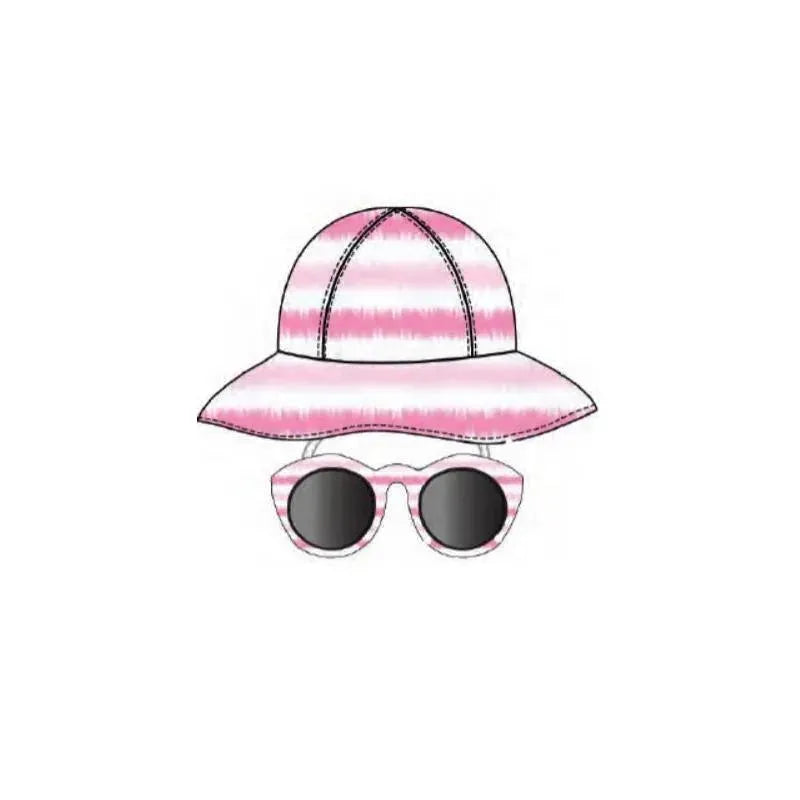 Little Me - 2Pc Girl Hat & Sunglass Set In Pink/White, 0/12M