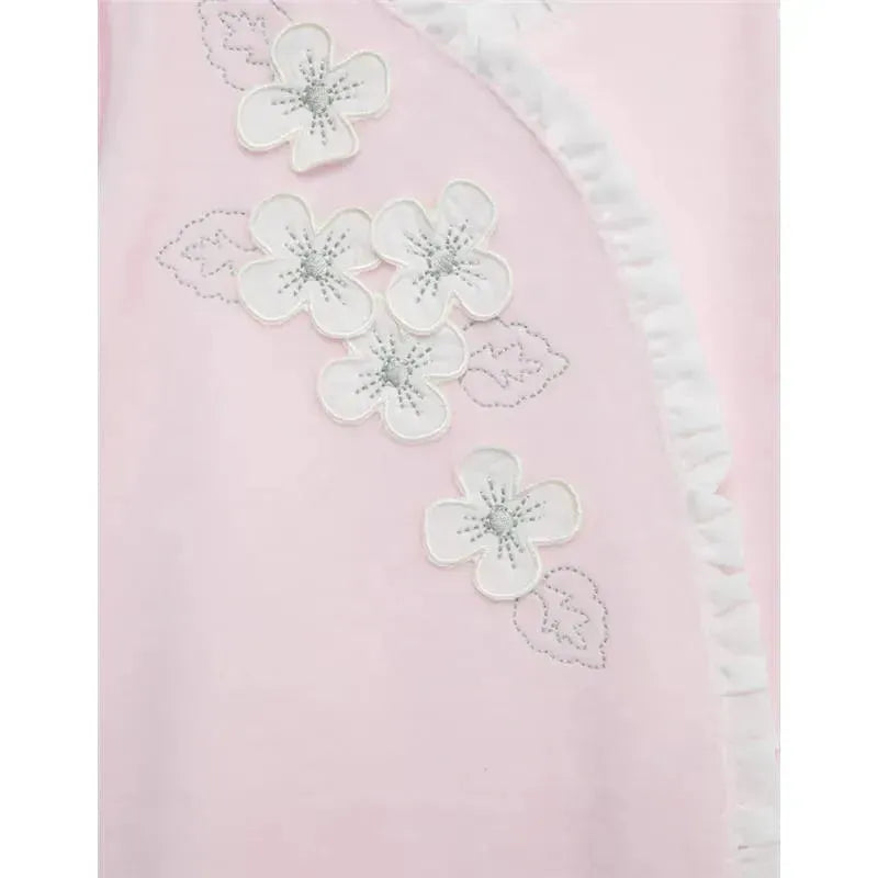 Ruffles and flowers make for an adorable velour footie with snap closure for your baby girl.