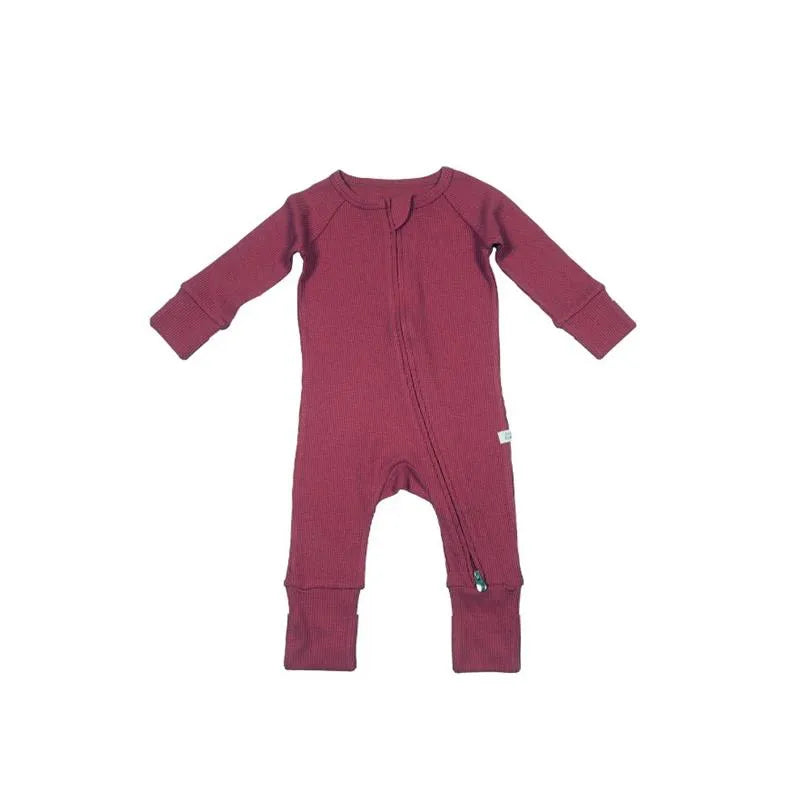 Picture the warmth of the waffle knit, hugging your baby's skin gently, ensuring that their tender skin relishes every moment. A full two-way zipper glides smoothly, making diaper changes a breeze, a whisper of convenience in those beloved but busy early months.