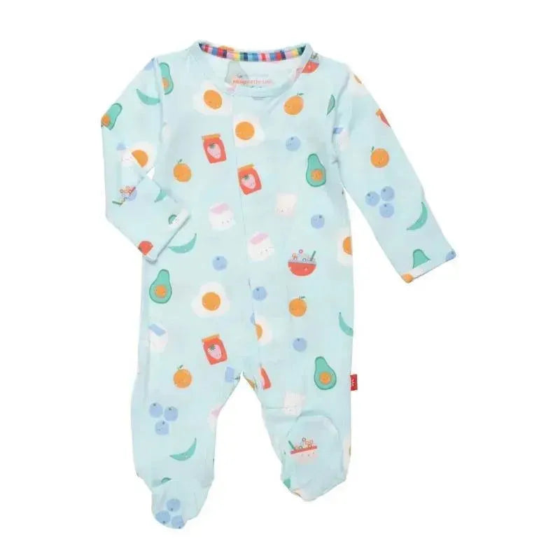 Our parent favorite Magnetic Me - Airplanes Organic Cotton Magnetic Footie is an everyday (and night) essential with magnetic closures that make dressing easy. magnets are quick, quiet, and a lifesaver for middle-of-the-night changes. GOTS certified organic cotton makes this baby wardrobe staple silky soft, breathable, and gentle on sensitive skin.
