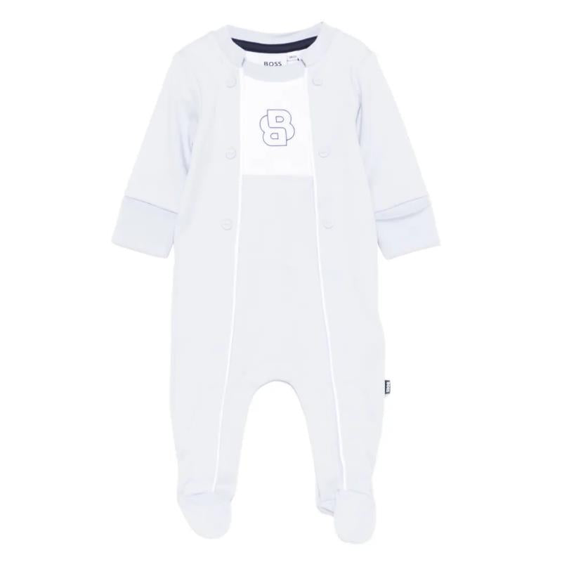Hugo Boss Baby Boy Footie With Fancy Details Pale Blue