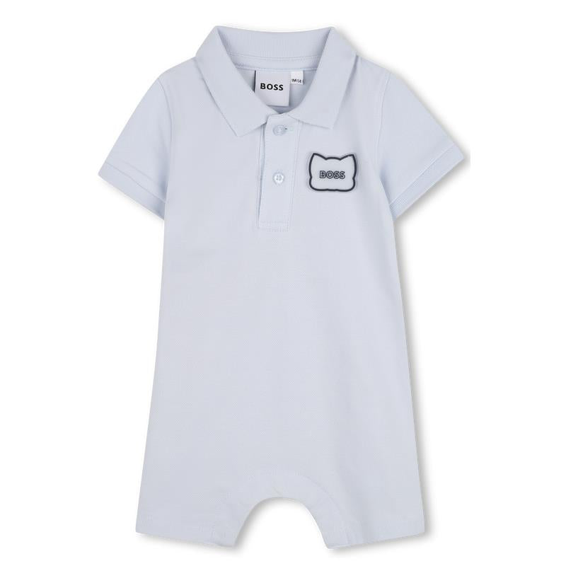 Hugo Boss Baby - Infant Short Seeve Polo Romper W Rubber Red Panda Patch Pale Blue