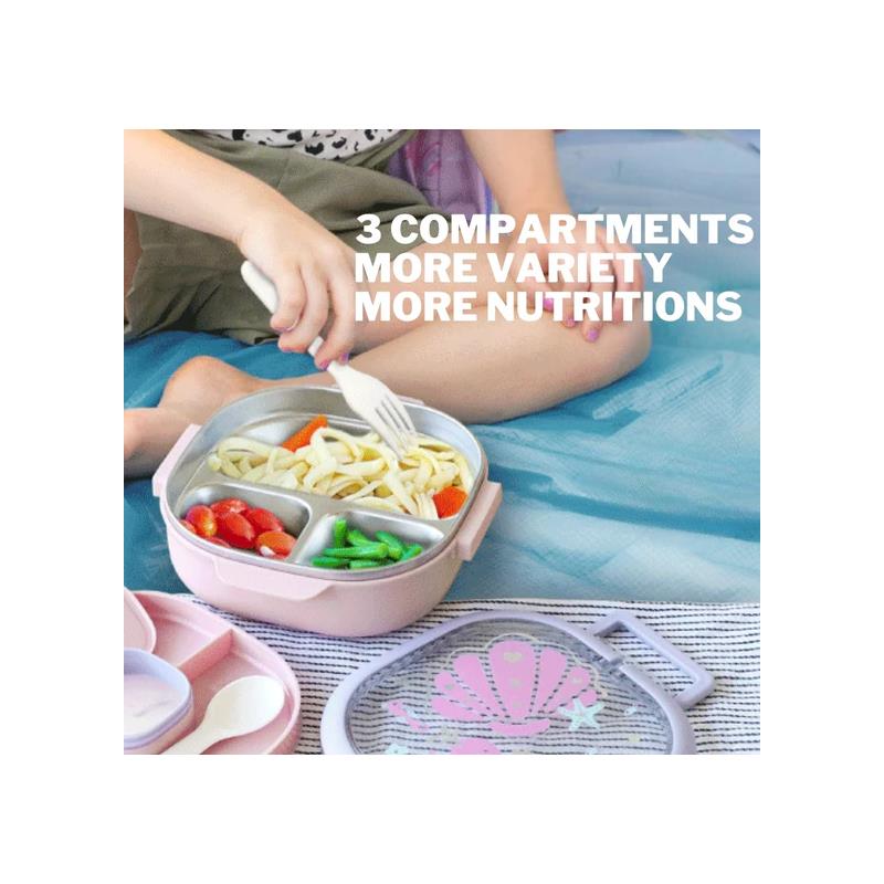 Crafted as a divided lunch box stainless steel, this metal bento box lunch box offers three spacious compartments, allowing for a variety of healthy snacks and meals. With a leak-proof design, you can rest assured that everything stays fresh and secure, making it one of the best lunch boxes for kindergarten.