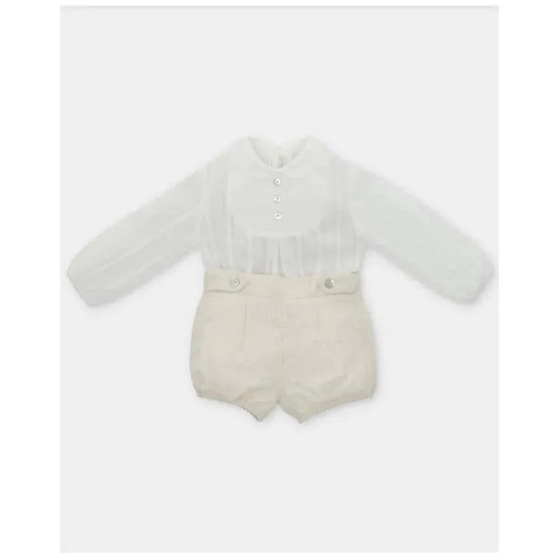 Martin Aranda - Baby Boy Set Shirt & Boys Shorts With Suspenders Tenerezza, Ivory