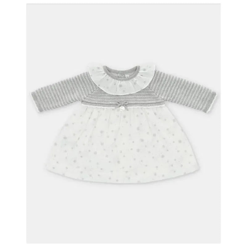 Martin Aranda - Baby Girl Knit Woven Mix Dress & Glace, Light Grey