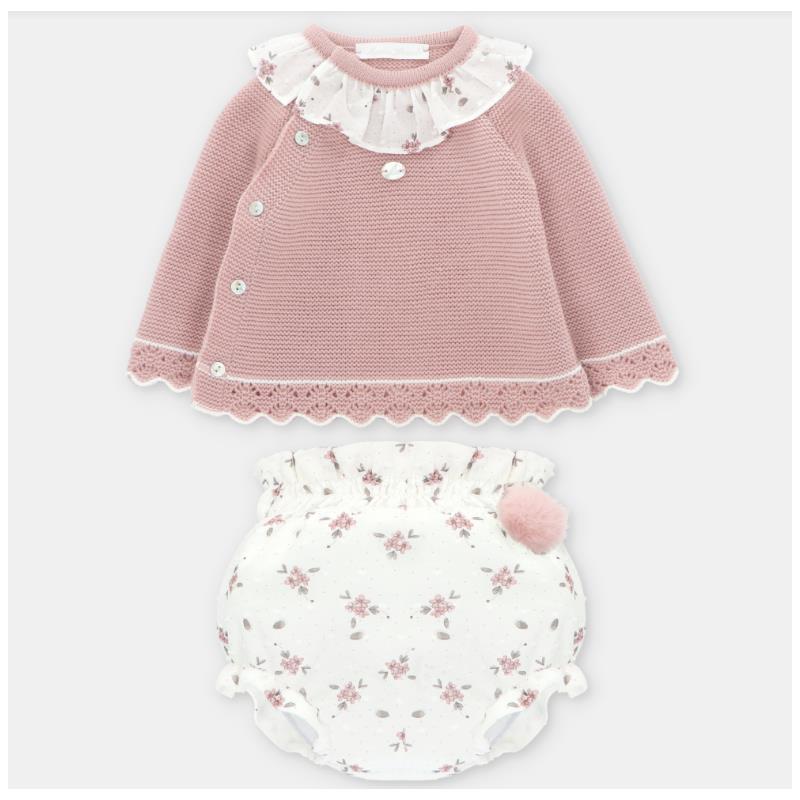 The Martin Aranda Draylon Set: Sweater & Matching Bloomer Cardiff Dusty Rose is an adorable and cozy outfit for your baby girl. Crafted from soft draylon knit, the set features a delicate sweater paired with a coordinating bloomer in a charming dusty rose shade. Perfect for everyday wear or special occasions, it offers both comfort and style, allowing your little one to move freely while looking effortlessly cute. This timeless set combines warmth, softness, and elegance in one delightful ensemble.