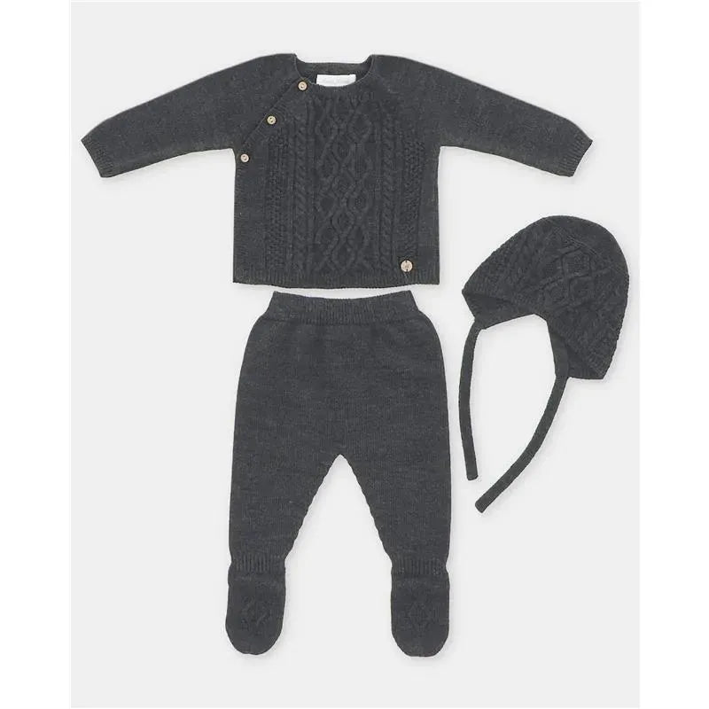 The Martin Aranda Take Me Home Set in Blue Grey offers a blend of style and comfort for your newborn. This beautifully crafted set includes a cozy knit sweater, matching leggings, and a charming bonnet, all designed with the signature attention to detail from Martin Aranda. The subtle blue-grey color adds a modern touch to this classic ensemble, perfect for those first precious moments. Soft, warm, and timeless, this set ensures your baby is both comfortable and elegantly dressed.