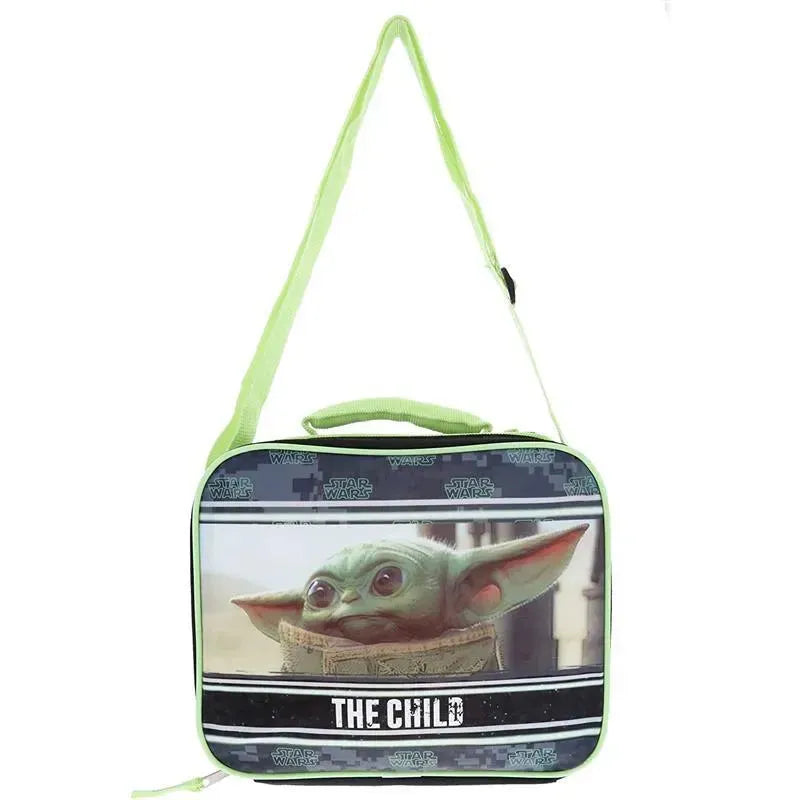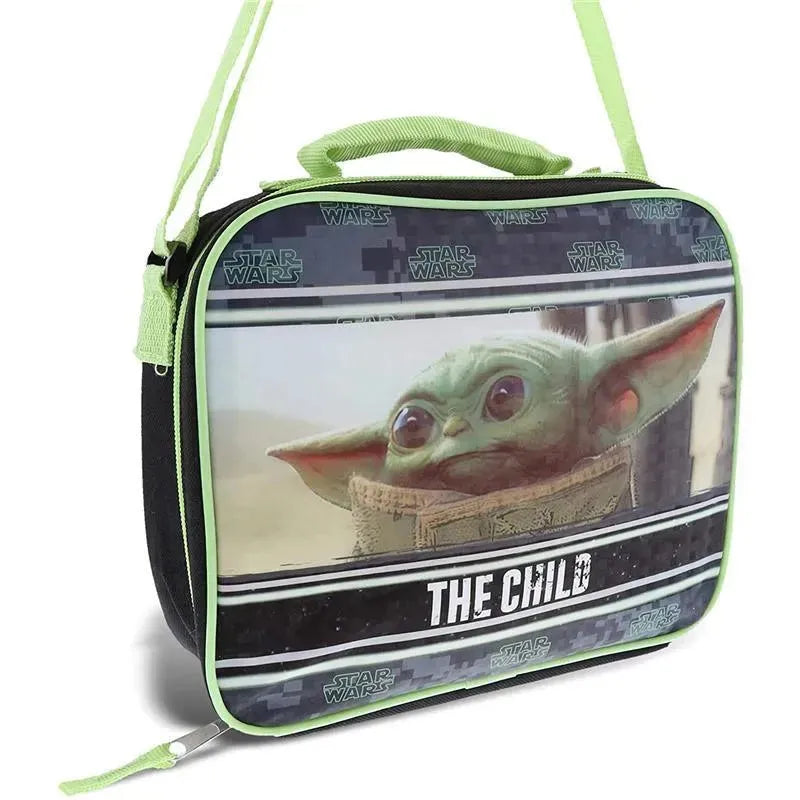 A spacious, lightweight, and colorful carrying bag for lunch kit that a true Star Wars fan will be proud to carry around the school or office. Perfect Baby Yoda lunch bag to match your novelty Star Wars bag, stationery, or school and supplies. A cool lunch bag for boys and girls who love Disney's The Mandalorian TV series. Send your little one to school with his or her favorite Star Wars character! Kids, students, and adult professionals who love the Star Wars movies & shows would love to have their food packed in a cute lunch bag featuring the adorable Baby Yoda.