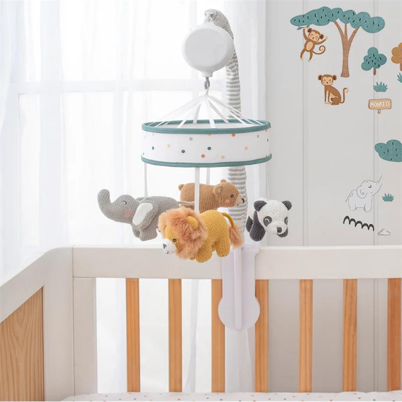 Little ones are going to love watching these zoo animals overhead to Brahms lullaby as they drift off to sleep. This gorgeous musical crib mobile features 100% cotton knit animals with exquisite detailing and is the perfect finishing touch to your nursery.