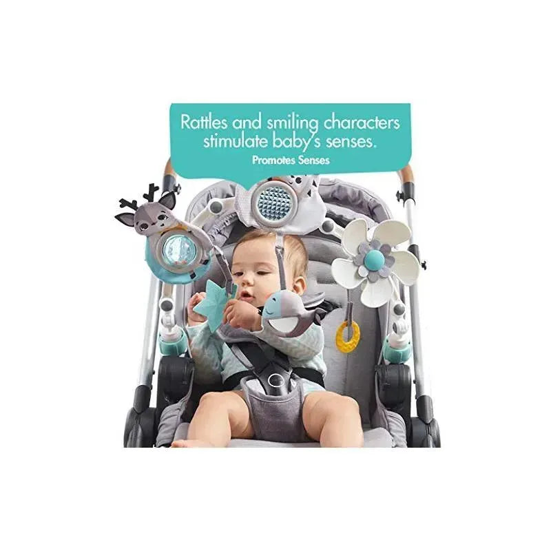 The Magical Tales Sunny Stroll arch is designed for two stages of development and provides babies with entertainment and development opportunities, everywhere you go! For the first 5 months, baby bats at the toys, boosting sensory exploration; at 5+ months, baby begins pulling and holding, exploring the arch in a more sophisticated way.