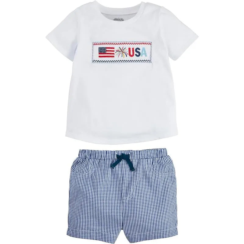 Mud Pie - Baby Boy Flag Smocked Short Set