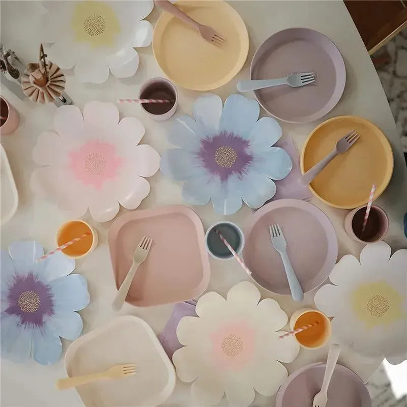 With soft colors and clean design, this plastic flatware fork and spoon set is simple and elegant—and easy for your toddler and child to hold.