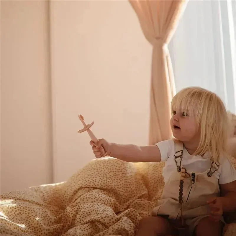Introduce your little one to brushing independently while building good habits with our playfully-designed toothbrush. Made from 100% food grade silicone, this toothbrush is designed with super soft bristles that gently clean and stimulate your little one's gums and teeth.