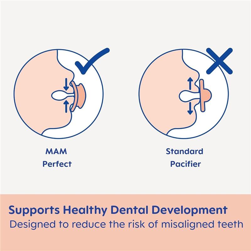 FLEXIBLE SHAPE FOR 0-6 MONTH BABY : The nipple on these pacifiers for babies is 60% thinner and 4x more flexible than average, exerting less pressure on the mouth in order to avoid jaw deformations.