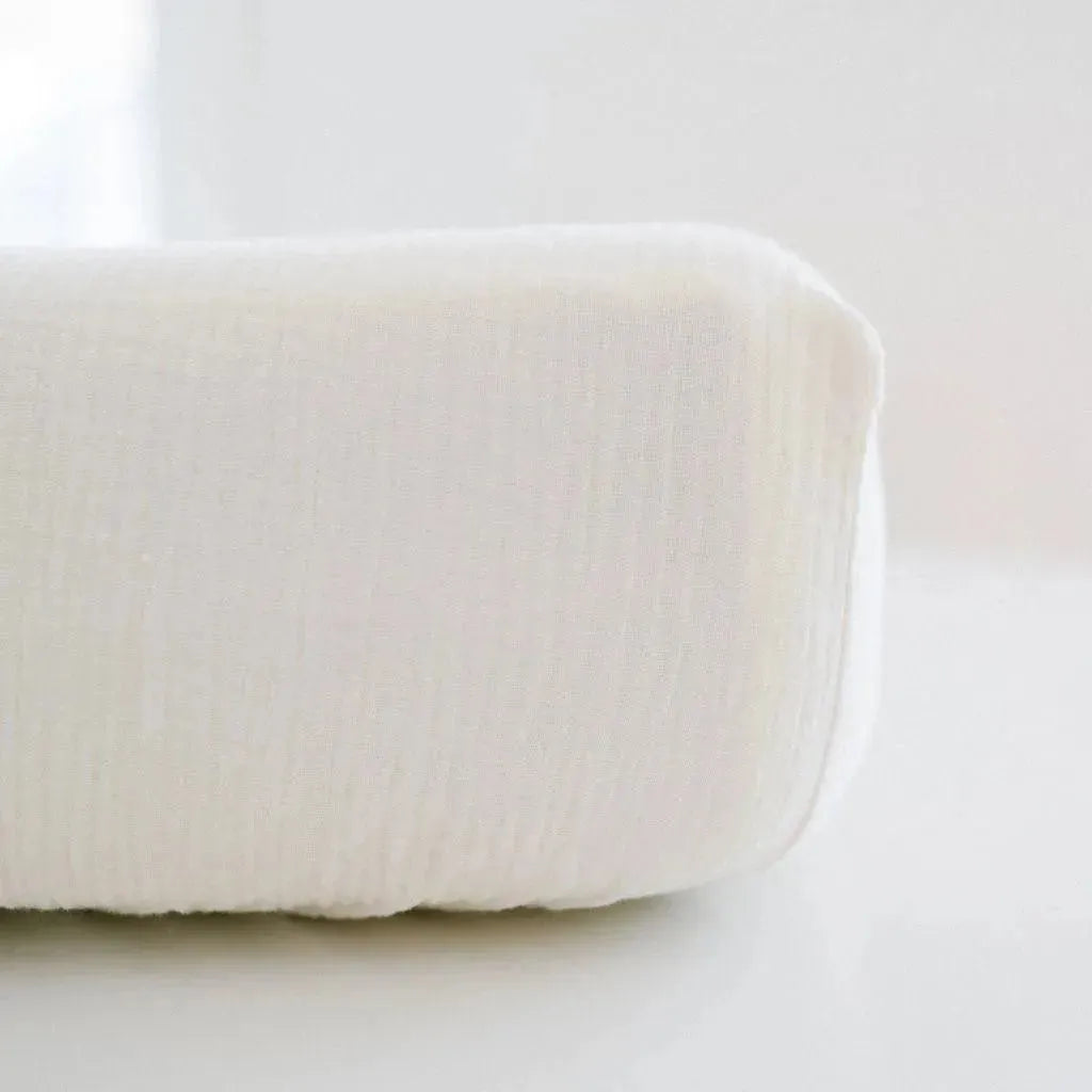This soft and subtle crib sheet is made for comfort, function, and design. Made from loosely woven cotton fabric creating a soft wavy muslin sheet with waterproof inner lining. Available in Natural Plain or Multicolored Hearts.